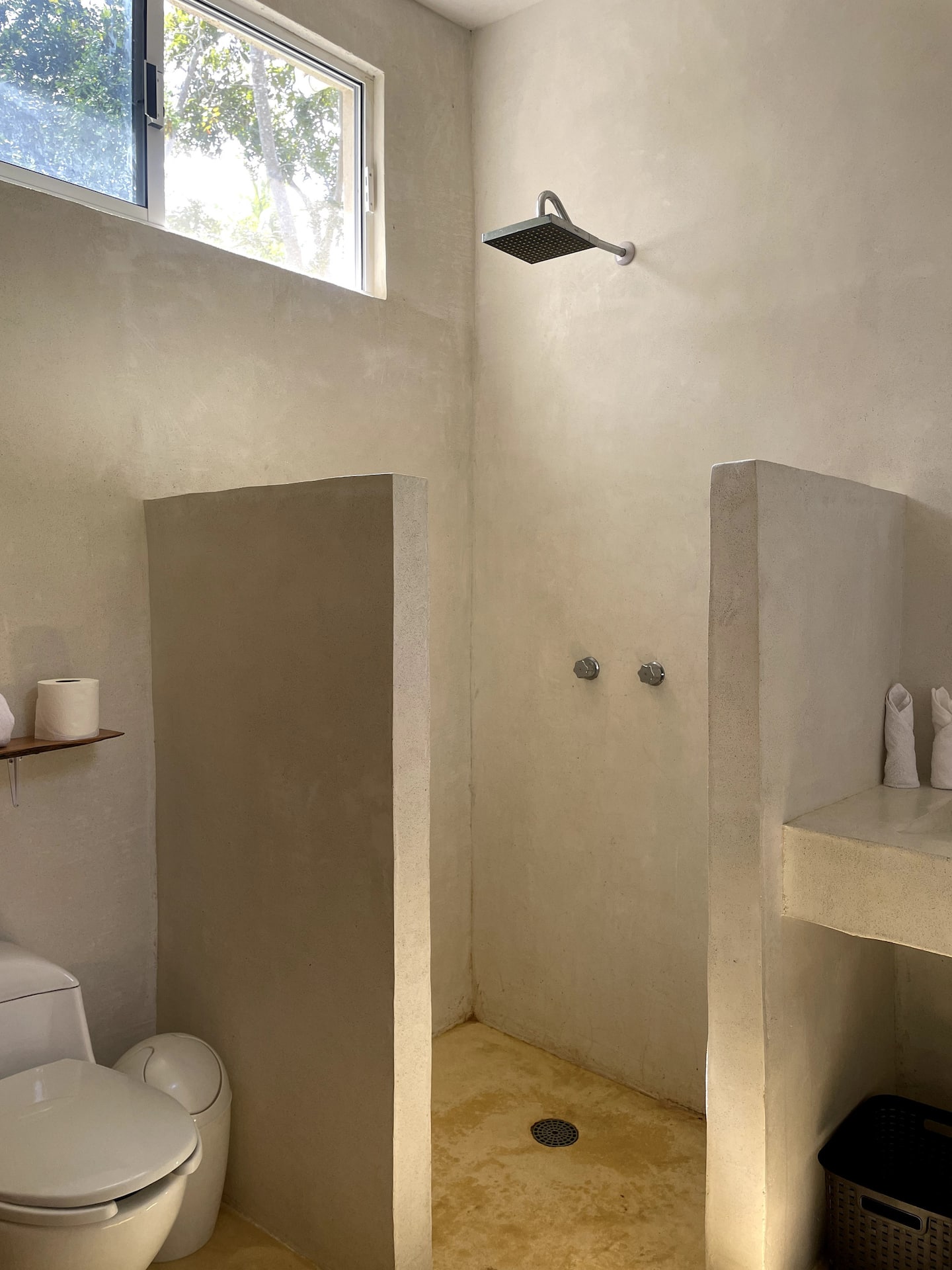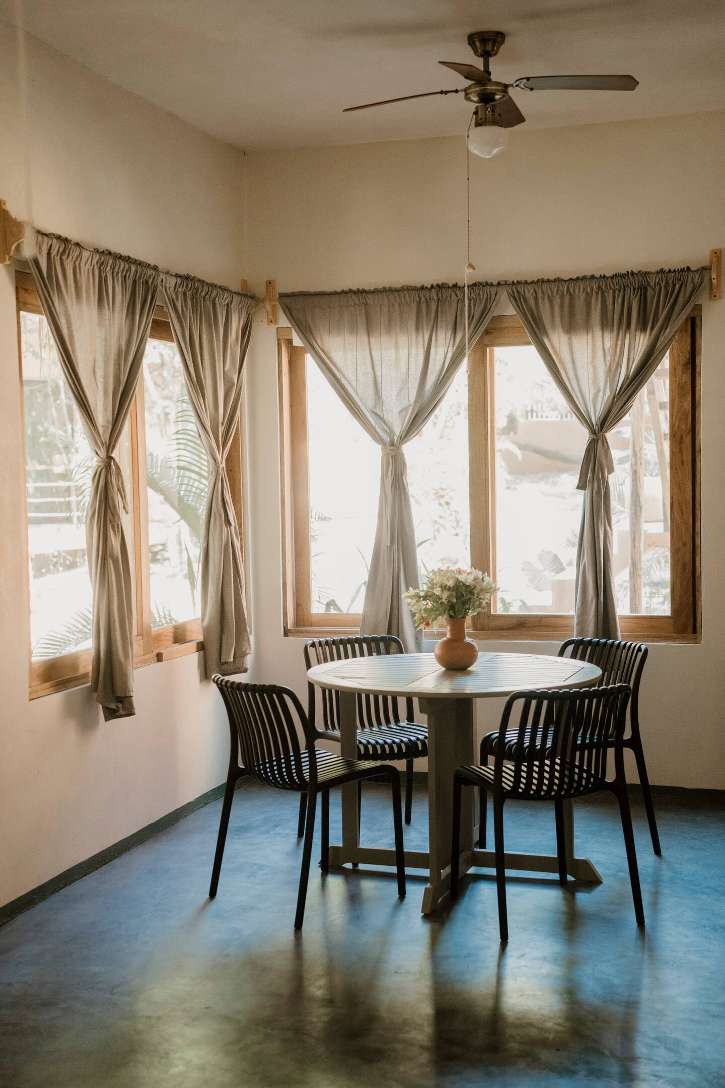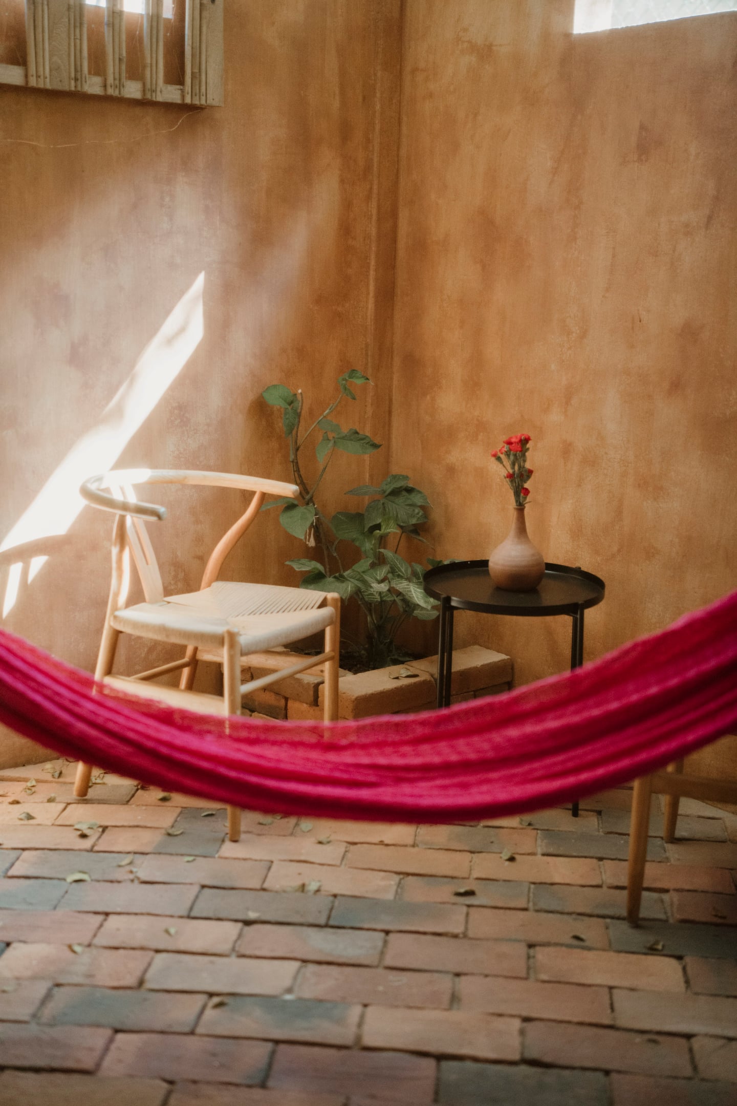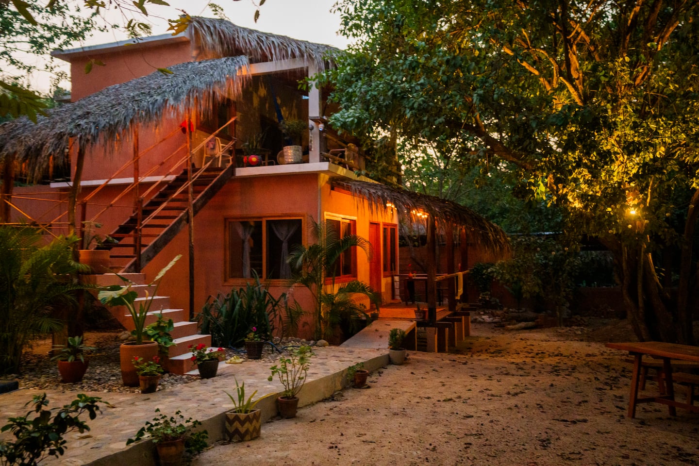 This comfortable and spacious apartment has a king-size bed and a Queen size bed, both in the same room. It also has a living room, kitchen, and an interior patio. Just a few minutes’ walk from the beach, half an hour away from the Flying Flow space.